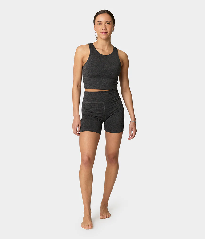 High-rise, form-fitting bike shorts with a 5” inseam and wide waistband, designed with four-way stretch for effortless movement during your practice.